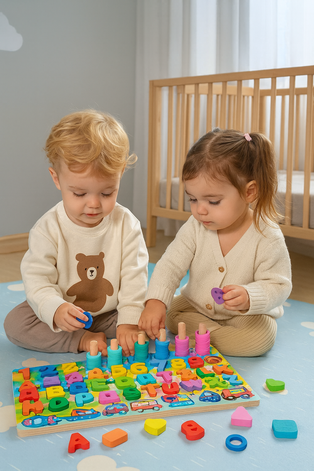 Tablero didáctico multifuncional elaborado en madera de alta calidad, diseñado para estimular el aprendizaje temprano en niños a partir de 2 años. Este conjunto integral incluye 30 piezas variadas: figuritas de transporte, animales, abecedario completo, números, argollas para conteo y peces magnéticos. Cuenta con tablero organizador y caña de pesca magnética para desarrollar coordinación motriz y habilidades cognitivas. Medidas: 45x22x15 cm. Herramienta educativa versátil que combina juego y aprendizaje en una sola estructura.